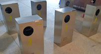 這是欣方圳為廣州高校生產的C383-2不銹鋼單面投放分類垃圾桶,尺寸規格為1000*400*1000mm,采用足1.0厚304#優質不銹鋼材料焊接成型,中間橫梁起到滅煙功能和做煙灰...