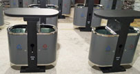 深圳大鵬景區G99鋼木分類戶外垃圾桶規格為1040*400*1000mm,鋼鐵部分生產工藝采用鋼鐵鋼板彎制成型,根據各自特征進行切割和焊接,并進行一些調整工序,將戶外...