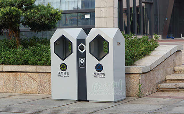 使用客戶:廣西來賓房產鋼制環保分類垃圾桶 發布時間:2017-10-10