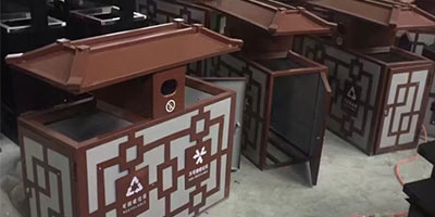 中國(guó)風(fēng)戶外鋼制分類垃圾桶工廠批量生產(chǎn)圖