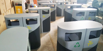 欣方圳定制側(cè)開門鋼制分類垃圾桶批量生產(chǎn)圖