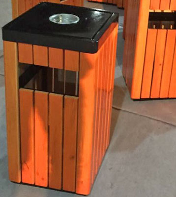 戶外鋼木單桶垃圾桶頂細節圖