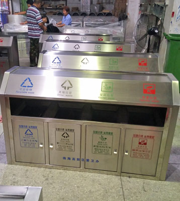 欣方圳斜切面不銹鋼四分類垃圾桶絲印新標(biāo)準(zhǔn)分類圖標(biāo)
