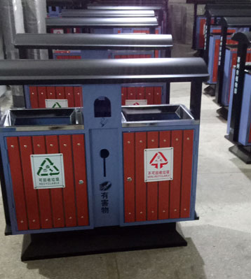 欣方圳戶外鋼木分類垃圾桶批量生產圖